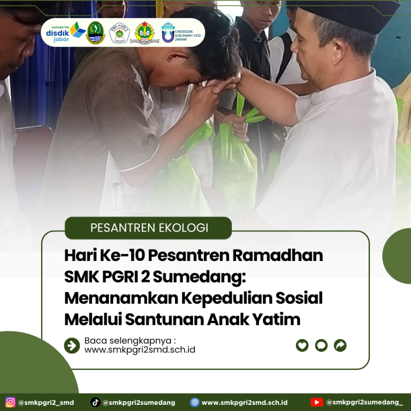 SUMEDANG – Memasuki hari kesepuluh, Jumat (06/03), kegiatan Pesantren Ramadhan 2026 di SMK PGRI 2 Sumedang berfokus pada penguatan nilai-nilai kemanusiaan dan kepedulian sosial. Sesuai dengan semangat keberkahan hari Jumat, sekolah menyelenggarakan kegiatan khusus yang ditujukan untuk menumbuhkan rasa kasih sayang terhadap sesama.